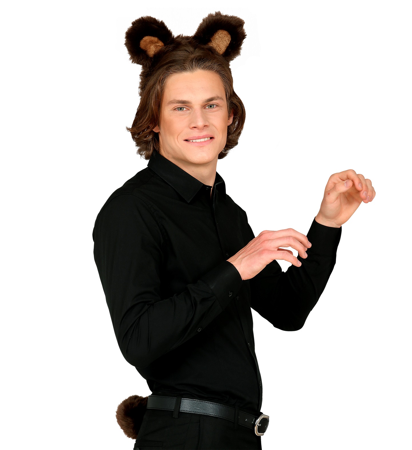Rinkinį sudaro: lankelis su meškos ausytėmis ir pūkuota, apvalia uodega.