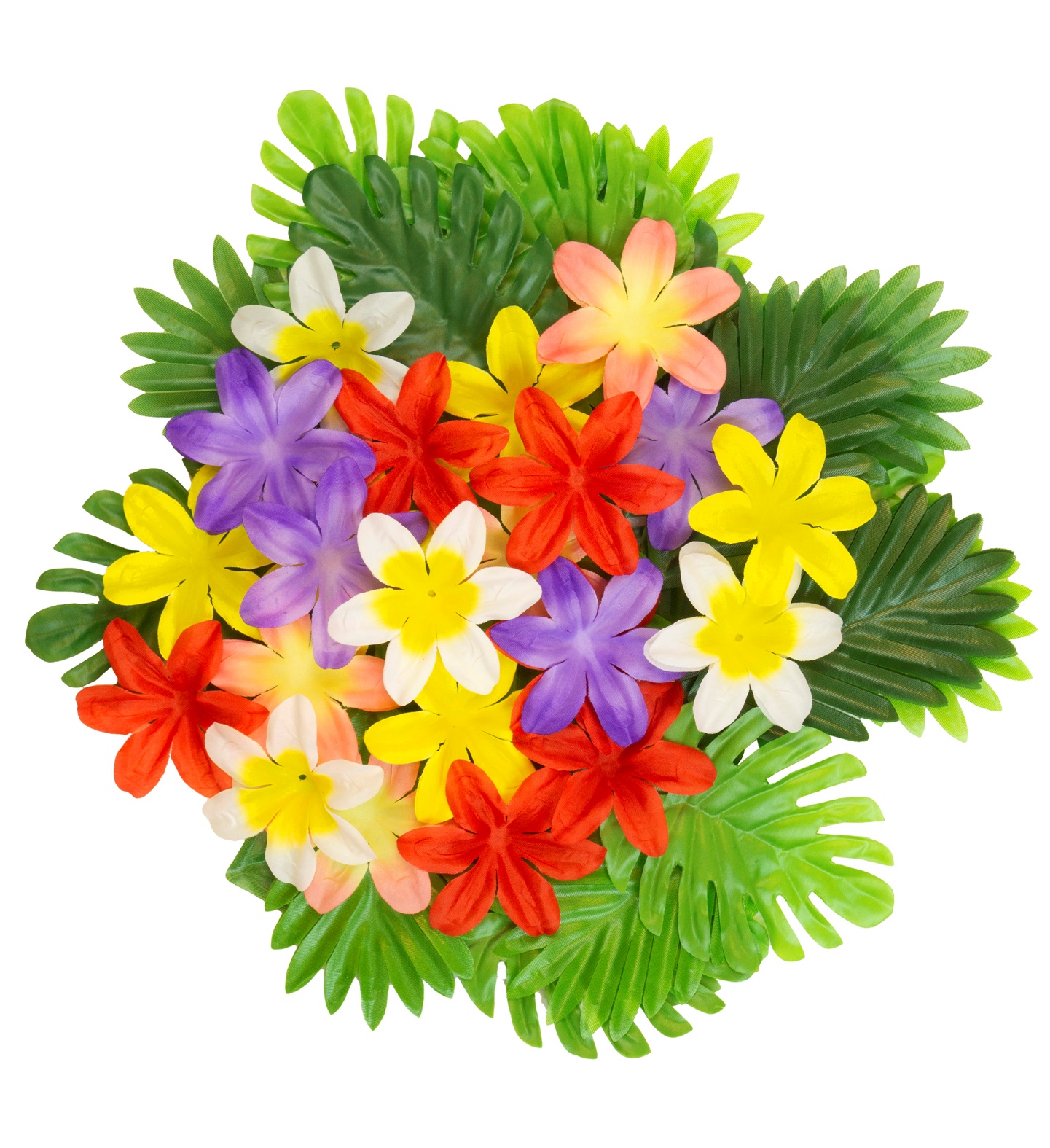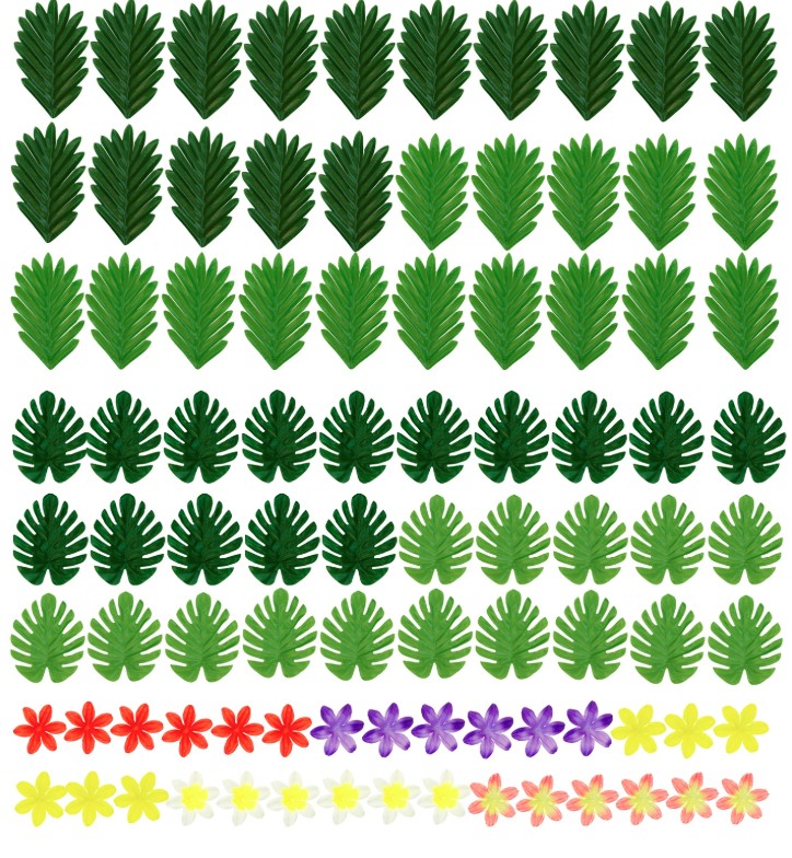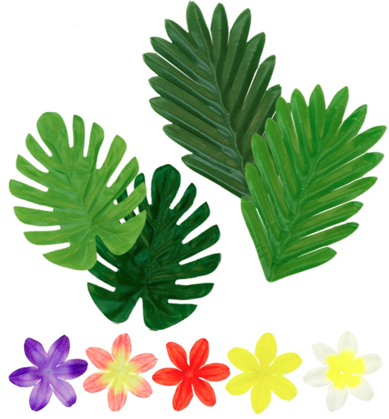 Rinkinį sudaro įvairių formų ir spalvų dekoratyviniai tropiniai lapai bei gėlės, kuriuos galima išbarstyti ant šventinio stalo, naudoti dekoruojant fotosienelę ar kitas šventės vietas. Ryškios spalvos ir tropiniai motyvai suteiks dekorui egzotiško žavesio.