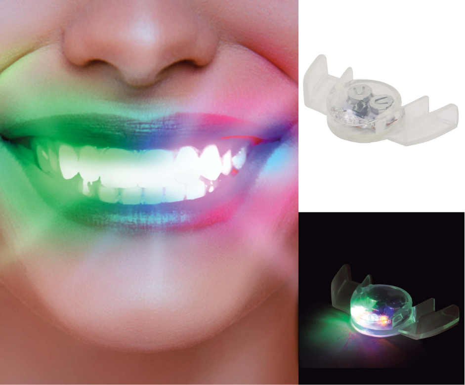 Įspūdinga dekoracija vakarėliams ir teminiams renginiams – LED dantų plokštelė, kuri užsidega ryškiomis švieselėmis.