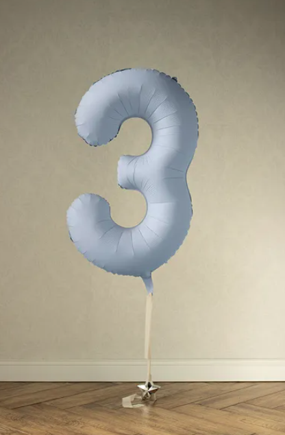Folinis balionas "3", pastelinis melsvas (85 cm)