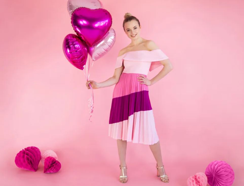 Ryškiai rožinės spalvos folinis balionas - širdelė. Tiks papuošti įvairias šventes ar kaip puikus priedas prie dovanos.