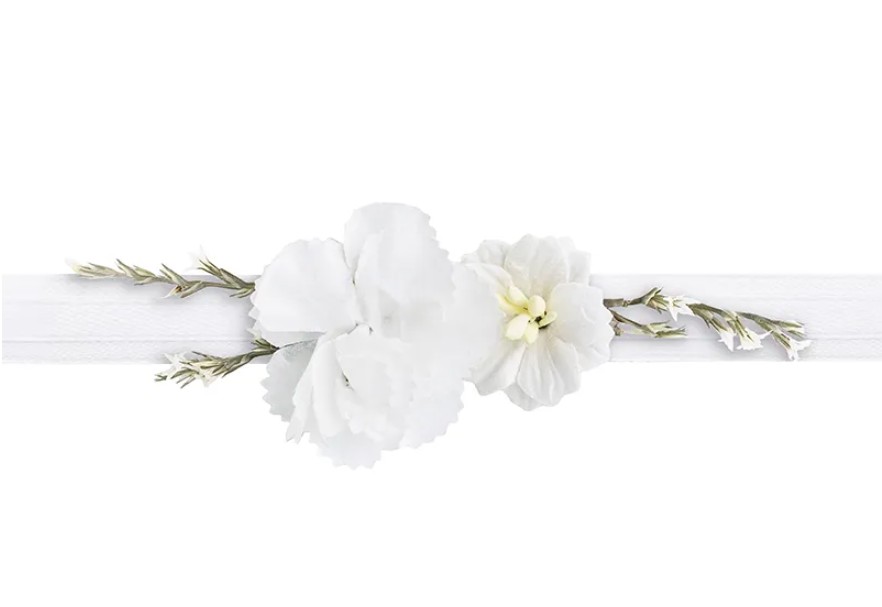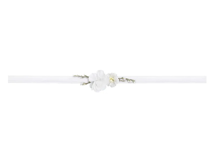 Dekoratyvinis gėlių vainikėlis-apyrankė, balta gėle, puikiai tiks ne tik būsimoms nuotakoms išskirtinai papuošti, bet ir vestuvių fotosesijoms, gėlių temos vakarėliams.
