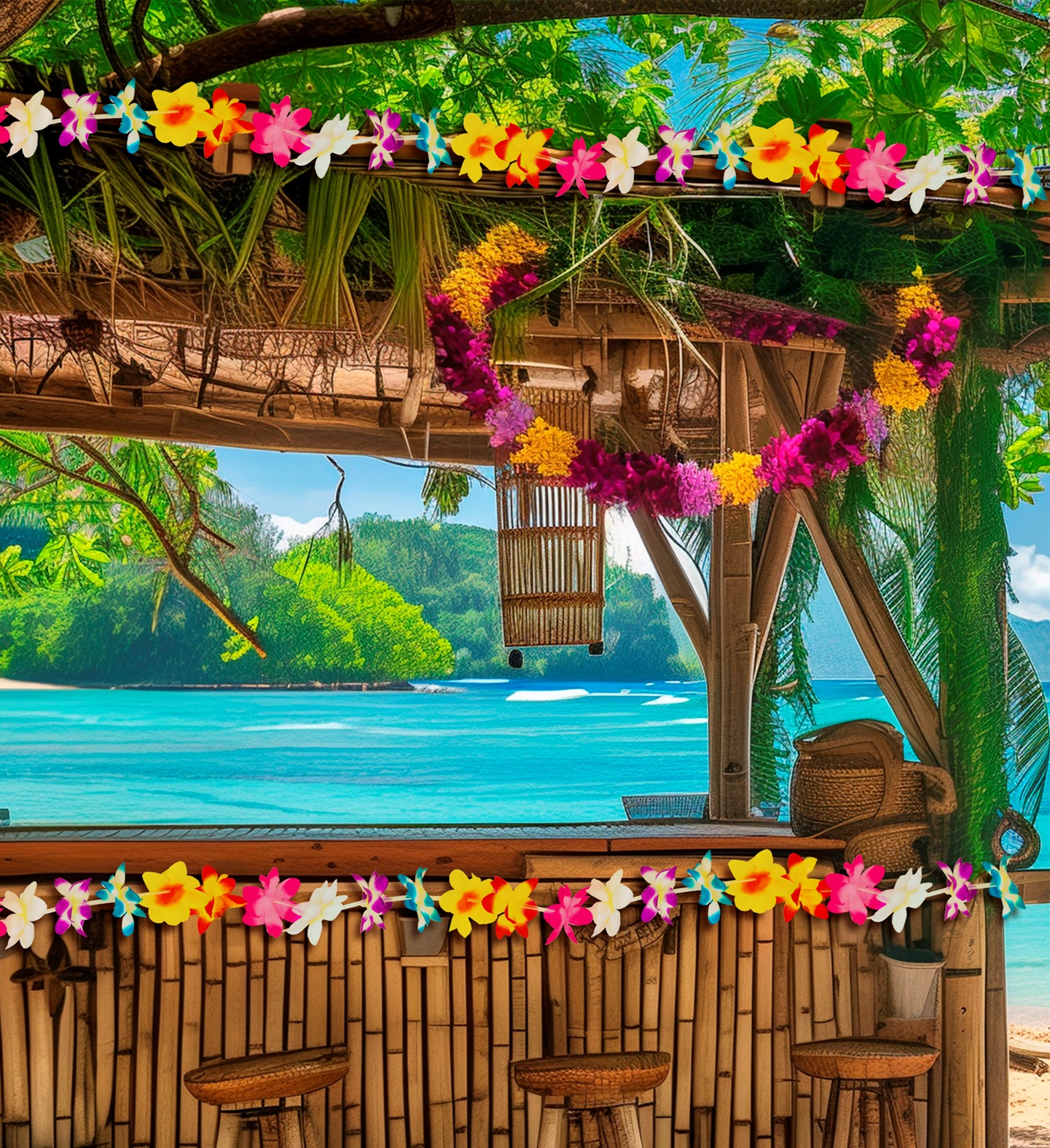 Dekoratyvinė Havajietiška gėlių girlianda, kuri nuostabiai atrodys pavasario šventėse.
