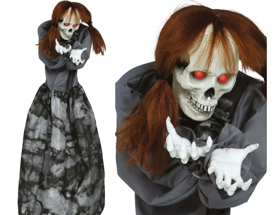 Dekoracija įjungus juda, akys šviečia raudonai ir skleidžia šiurpius garsus.