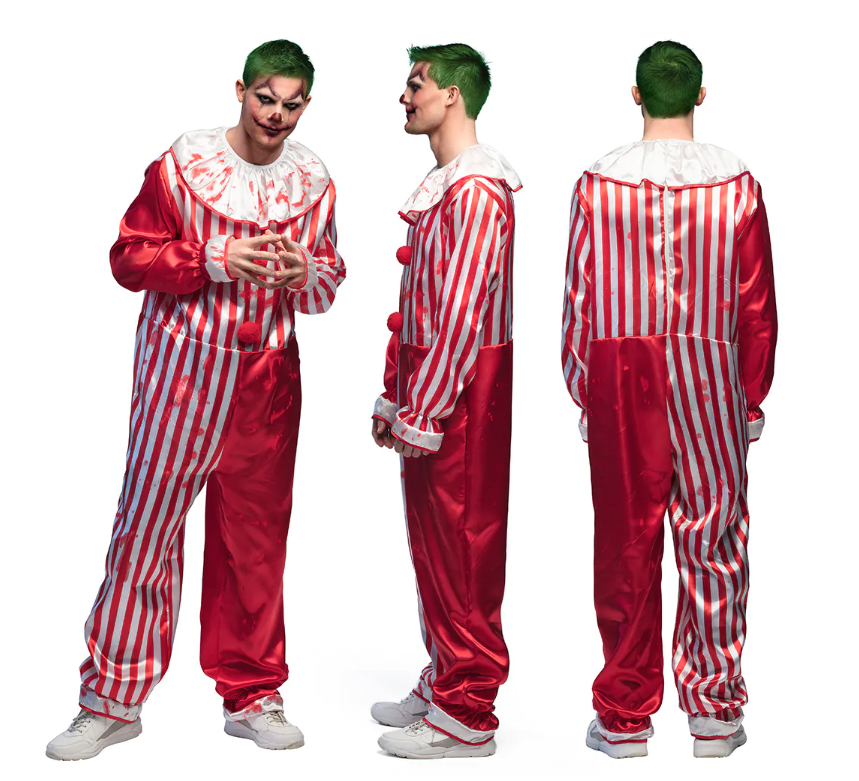 Kostiumas-kombinezonas Klounas žudikas, kuris puikiai tiks Helovyno vakarėliui ir derės prie skirtingų kaukių.