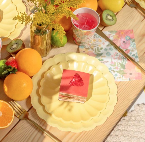 Gelsvos popierinės lėkštutės, papuošiančios bet kurią šventę - gimtadienį ar smagų pasisėdėjimą su draugais.