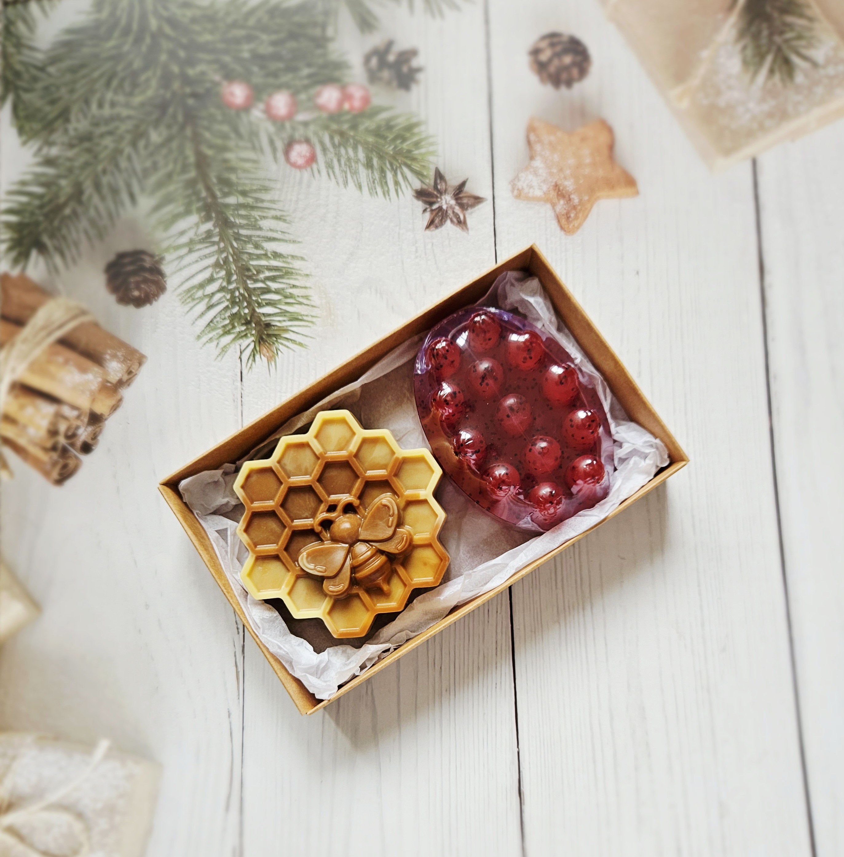 Leiskite savo odai patirti natūralių ingredientų magiją. Šis muilų rinkinys sukurtas tam, kad kasdienė rutina virstų mažomis SPA akimirkomis – nuo švelnaus, medumi praturtinto muilo iki maloniai masažuojančių kvapnių muiliukų. Jūsų oda bus ne tik švari, bet ir lepiai pamaitinta.