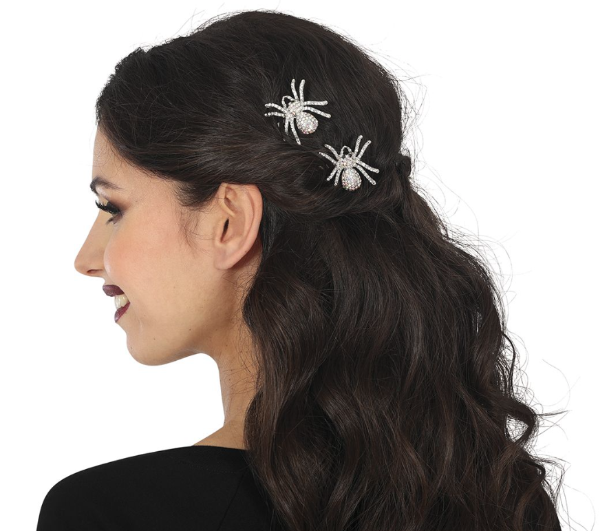 Plaukų segtukai Blizgantys vorai, kuriuos galima naudoti ne tik kaip plaukų aksesuarą, bet ir dekoraciją Helovino vakarėliui!