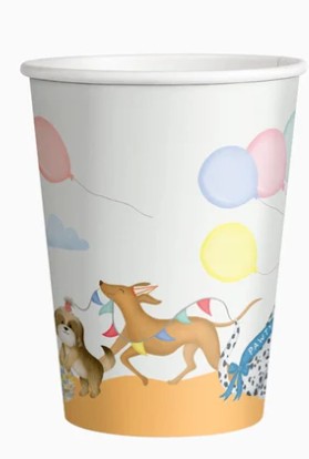 Suteikite savo stalui jaukumo ir žaismingumo su popieriniais puodeliais „Šuniukų gimtadienis“.
