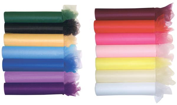 Violetinės spalvos lengvas tiulis, skirtas dekoravimui.