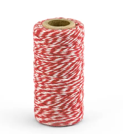 Plonytė raudonos ir baltos spalvų virvelė. Puikiai tiks pakabinti lengvoms dekoracijoms, perrišti smulkias dovanėles.